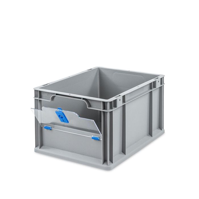 Die Euroboxen NextGen Insight Cover sind auf der Stirnseite zu ca. 40% geöffnet.